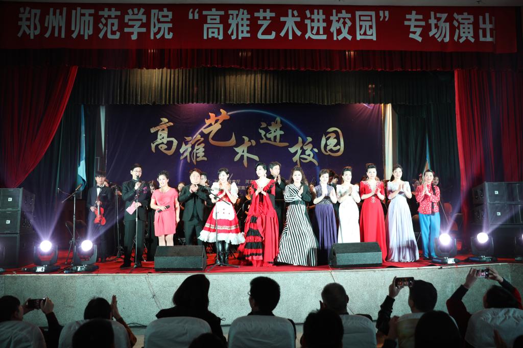 4月11日晚,由省教育厅、文化厅、财政厅主办,学院和郑州师范学院承办的“走近大师、感受经典、陶冶情操、提高修养”的高雅艺术进校园——中外经典歌剧唱段音乐会在航海路校区艺术中心华彩上演。演出由郑州师范学院音乐与舞蹈学院师生倾情演绎,汽车学院党总支书记周成林、汽车学院团总支书记胡训华、郑州师范学院音乐与舞蹈学院党总支书记王宏、郑州师范学院音乐与舞蹈学院副院长王艳霞以及教师代表、学生代表共350余人共同欣赏了此次经典。