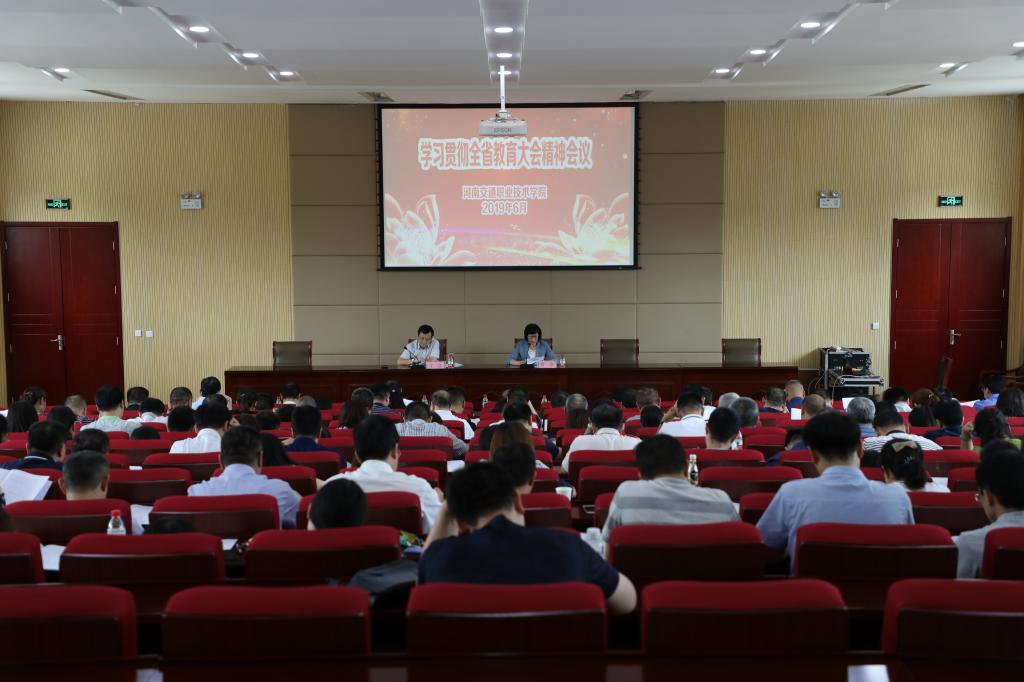 6月19日下午,学校在新校区行政楼一楼报告厅组织召开学习贯彻全省教育大会精神会议。学院在郑领导班子成员,全体中层干部、机关全体人员参加会议,会议由院长李强主持。