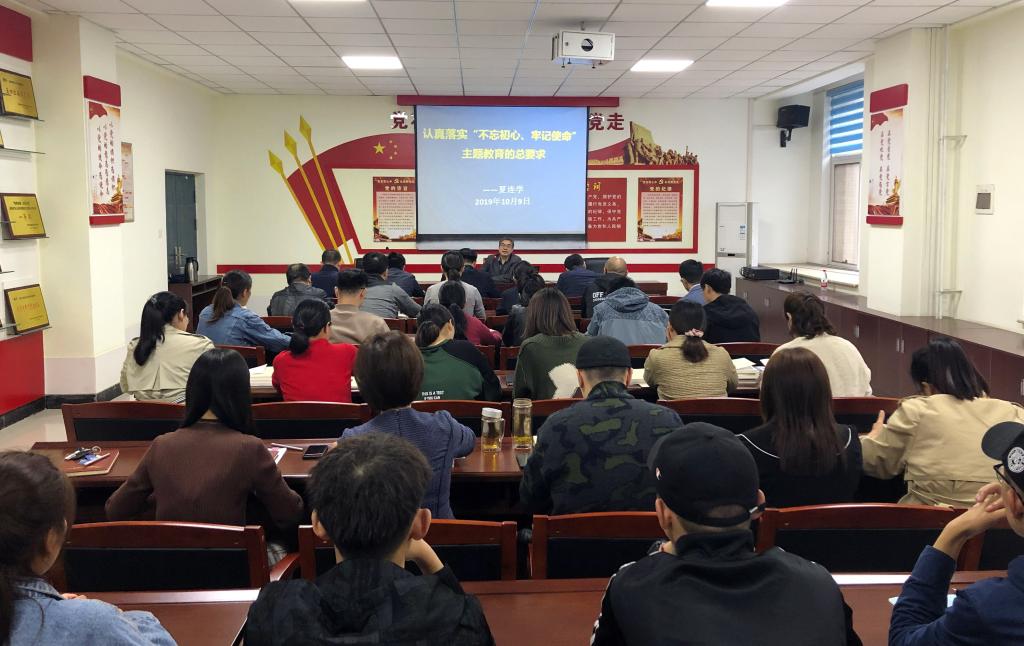课上,夏连学以《中国共产党章程》为切入点,立足国内外的形势与机遇,深度解读了“不忘初心、牢记使命”的丰富内涵和重大意义,从提高思想自觉、理论自觉、行动自觉的角度,与大家交流如何实现“守初心、担使命,找差距、抓落实”的总要求。并对主题教育的根本任务、具体目标及重点措施进行详细阐述。接着,对学院工作中出现的突出问题进行重点剖析,针对重要工作提出了详尽的整改策略。强调大家要将“改”字贯穿始终,做到立查立改、即知即改,以解决问题的扎实性、彻底性确保主题教育落到实处。