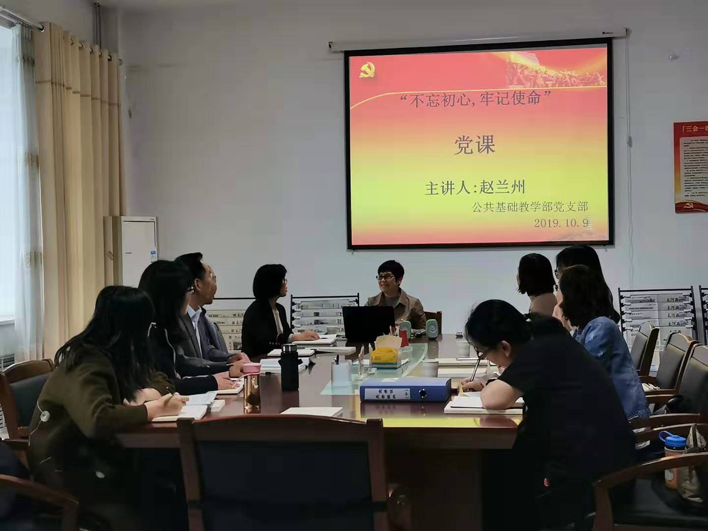 10月9日下午,学院纪委书记赵兰州在新校区为公共基础教学部全体党员上了一堂题为《政治建设:党的根本性建设》的党课。