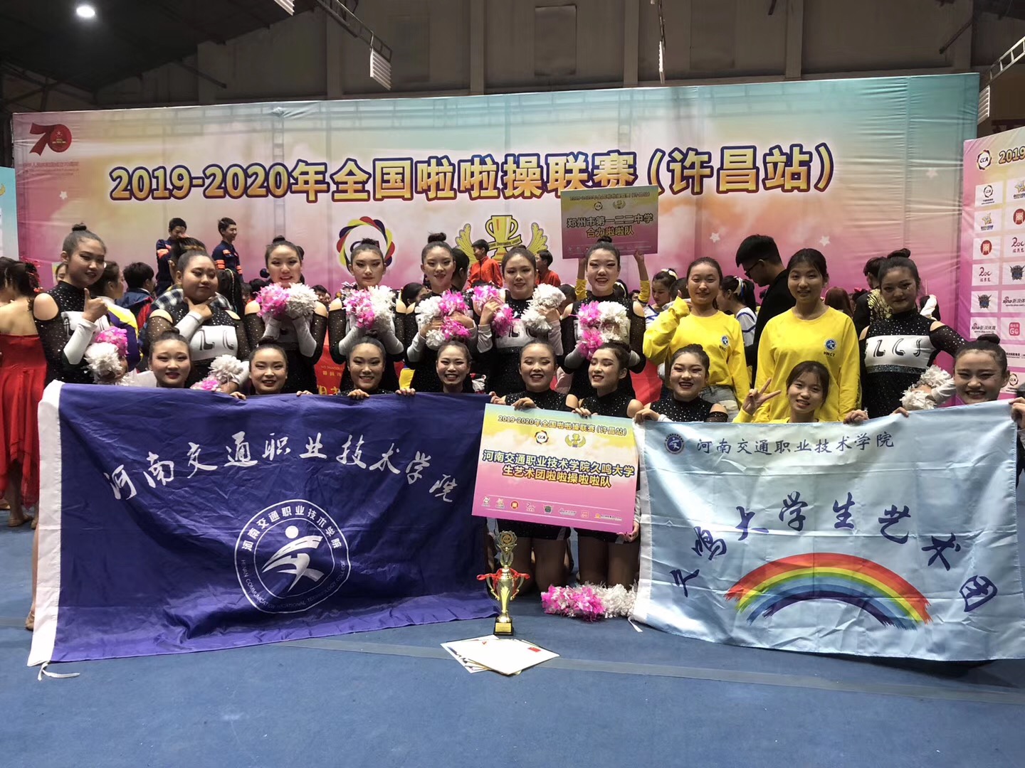 12月6至8日,2019-2020年全国啦啦操联赛(许昌站)在河南省许昌市举行,共有来自全省各地市的大、中、小学、幼儿园、社会俱乐部63支队伍1500余名运动员参加比赛。学院久鸣大学生艺术团啦啦操队,取得了“公开青年组丁组”第一名的优异成绩。