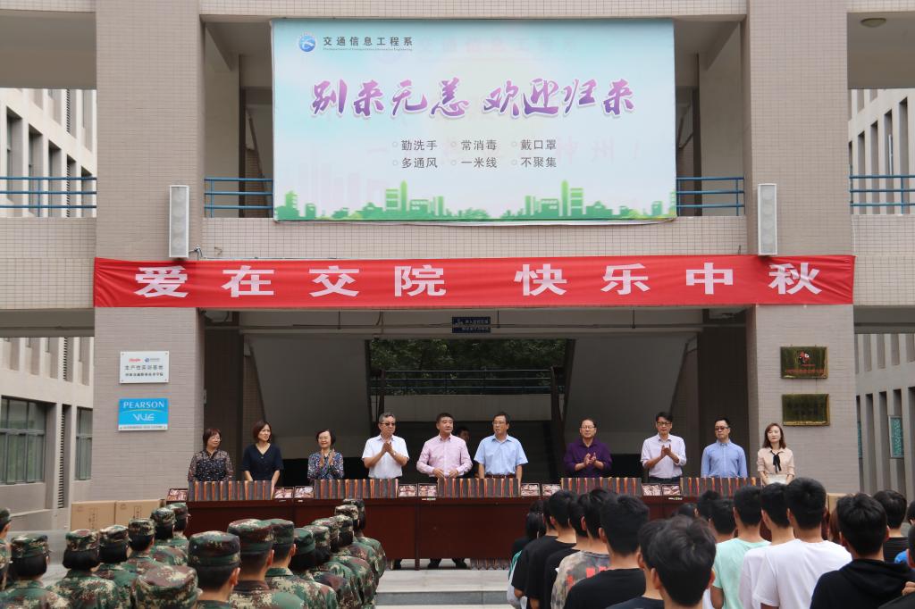 在中秋佳节来临之际,为了让交院学子在祥和愉悦的节日氛围中欢度佳节,感受到家的温暖,9月28日上午,校工会主席张瑞春代表学校党委带领各系(院)学生工作负责人、学生工作处相关人员,在交通信息工程系楼前开展“爱在交院,快乐中秋”送关爱活动,为5695名全体在校生发放中秋月饼,并为同学们送上节日祝福。