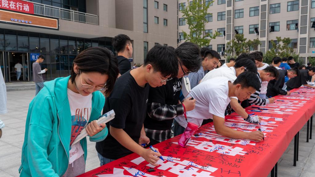 9月29日中午,“杜绝舌尖上的浪费”签名活动在新校区二期餐厅门前举行。来自各院系的同学和老师积极响应,纷纷在印有“民以食为天,盘以光为廉,厉行勤俭节约,反对铺张浪费,建设节约型校园”的红色条幅上庄重地写上自己的名字,表达自己培养勤俭节约好习惯的决心。学院院长刘志伟、副院长李松涛、纪检书记赵兰州也加入到了签名队伍中,为厉行节约作表率。
