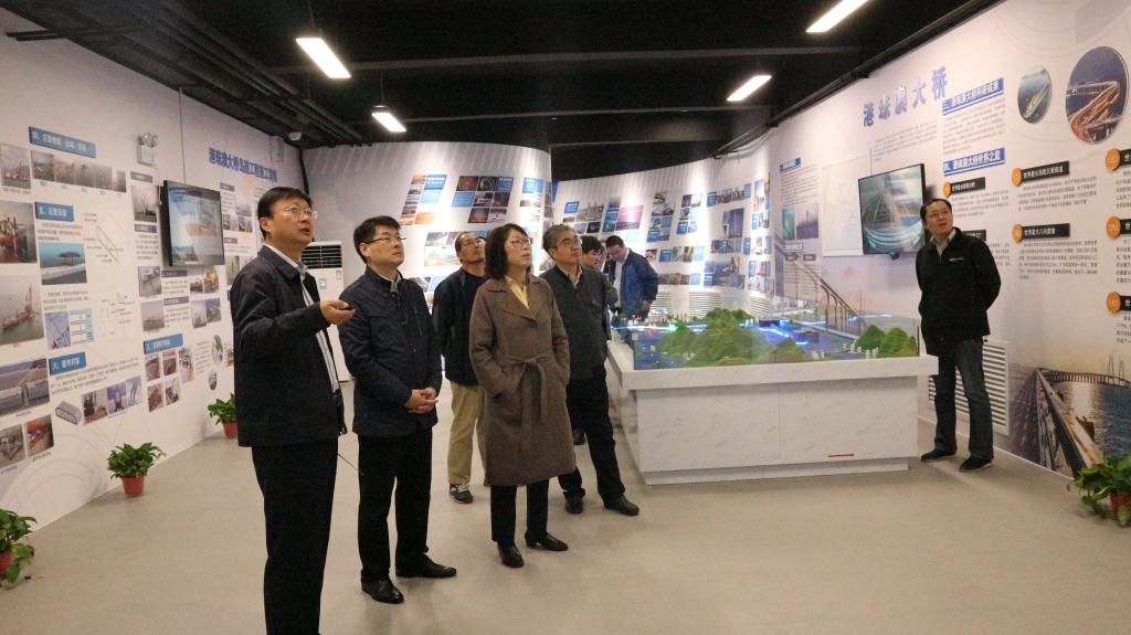 曹焱一行先后参观了科普馆一楼河南高速公路云数据平台、河南高速公路路网数字沙盘、河南省高速公路成就展板、三山一滩实体模型、数字墨水信息屏、双千工程专版等,以及二楼的中国高速公路发展成就专区、尧栾西高速全景沙盘教学区、高速公路路桥隧展板、世界优秀工程专版、港珠澳大桥沙盘等,公路学院院长游江涛全程进行了讲解。