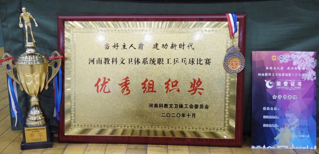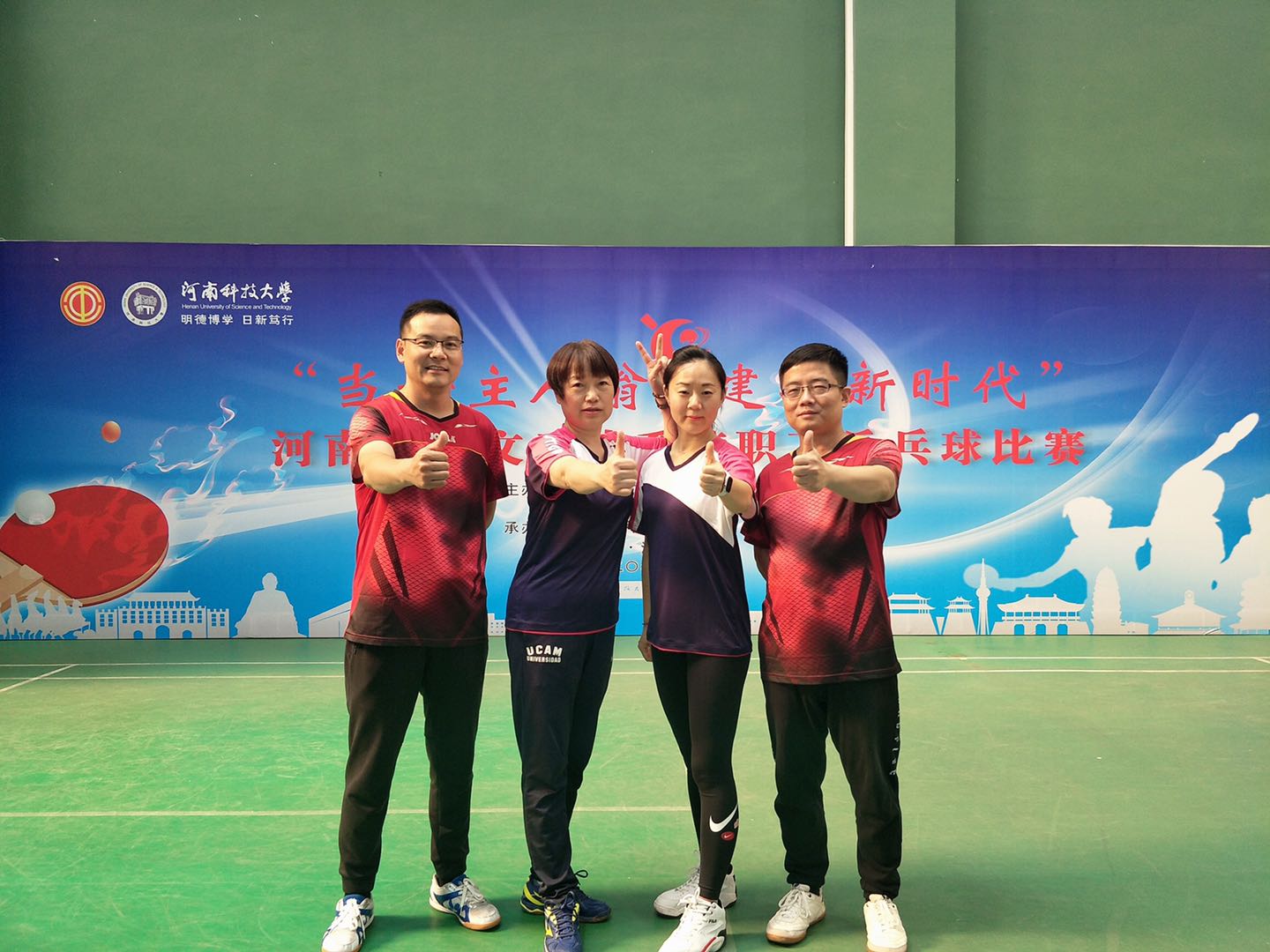 金秋十月,天高云淡。为丰富文化生活,提高教职工健康水平,振奋精神,以更加昂扬的精神状态投身到学校的“双高工程”建设中,学校工会选派武亚敏、石霖凯、董新敬、黄樱四位教师于10月17日至20日参加了由河南省教科文卫体工会和河南省体育局工会联合主办,河南科技大学承办的“当好主人翁,建功新时代”河南教科文卫体系统职工乒乓球比赛。