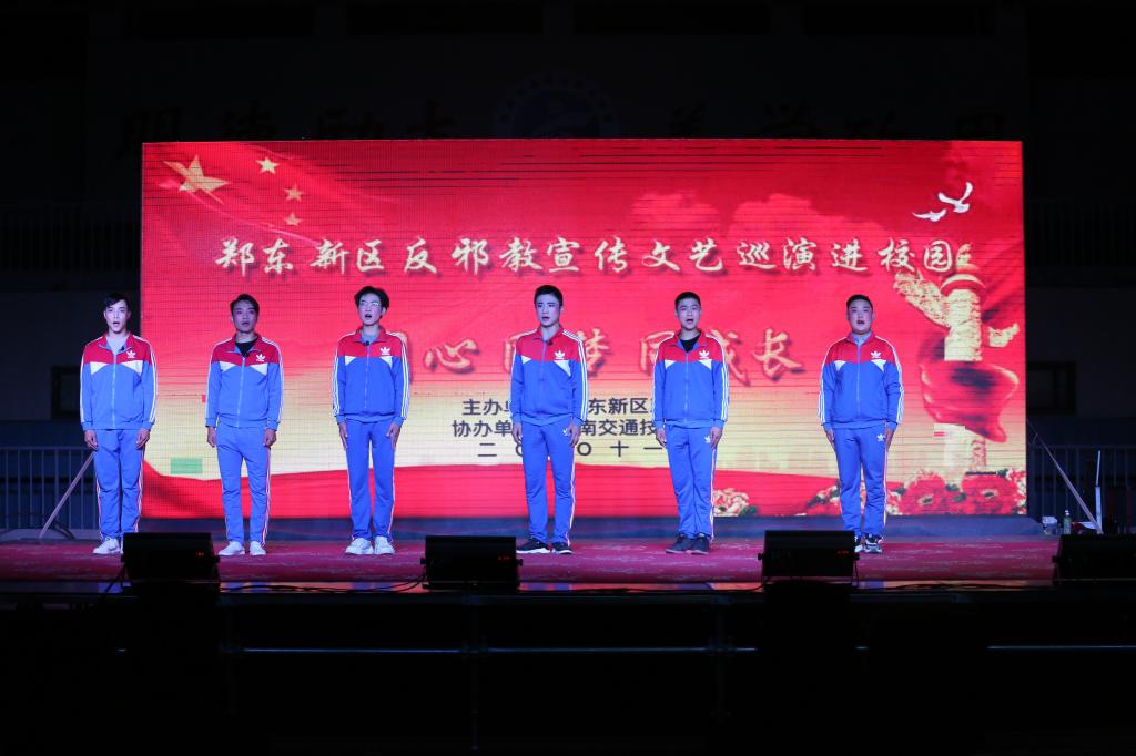 11月4日晚,由郑东新区政法委主办,河南交通职业技术学院协办的郑东新区反邪教宣传文艺巡演进校园活动在学校东校区操场举行。学校近2000名师生现场观看了文艺演出。