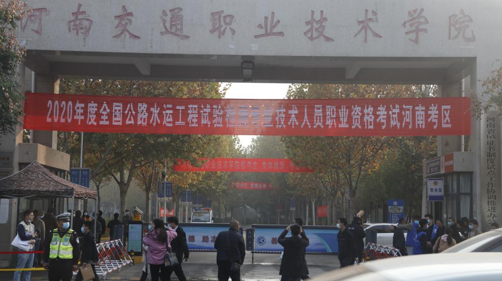 11月14日-15日,2020年全国公路水运工程试验检测专业技术人员职业资格考试(河南考区)在河南交通职业技术学院举行。本次考试共设考场528个,7980名考生参加考试,共计15609科次,考试按照“助理试验检测师”和“试验检测师”两个类别进行,涵盖《公共基础》《道路工程》《桥梁隧道工程》《交通工程》《水运结构与地基》《水运材料》六个科目。