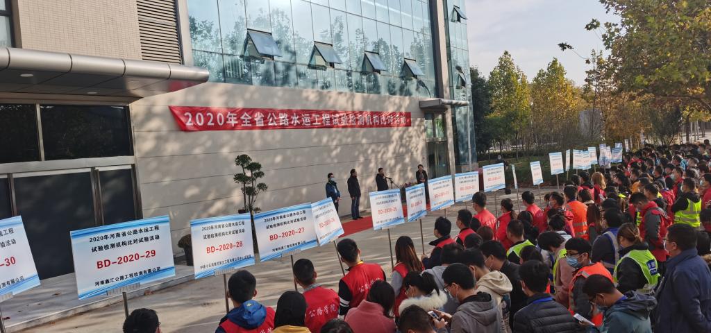 为进一步做好 “13445工程”服务保障工作,推动公路水运工程试验检测行业高质量发展,提升试验检测机构的技术水平,11月19日-20日,河南省交通运输厅质检站组织开展了全省公路水运工程试验检测机构比对试验活动,重点对路基压实度、沥青路面纵断面高程、路面构造深度等参数进行比对。比对试验活动由学院承办,全省共107家检测机构报名参加,参赛人员近500名。厅质检站检测处处长王劲松、学院副院长卢旺林出席比对试验开幕式并发表讲话。开幕式由厅质监站处长李雯主持。