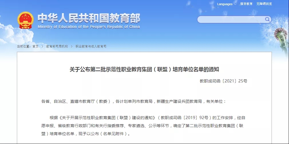 6月4日,教育部职业教育与成人教育司正式公布了第二批入围国家示范性职业教育集团(联盟)培育单位名单。我校牵头成立的河南省交通运输职业教育集团成功入选(具体见《关于公布第二批示范性职业教育集团(联盟)培育单位名单的通知》教职成司函2021【25号】文件)。本次入选是继2020年成为河南省首批示范性职业教育集团(联盟)之后,集团化办学再获殊荣。