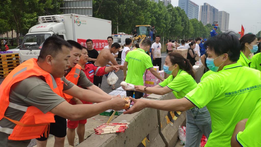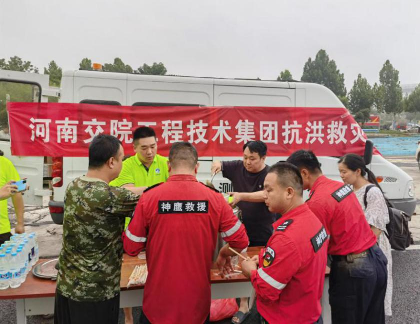 洪灾无情人有情,危难关头勇担当。河南交院工程技术集团在河南交通职业技术学院党委的领导下,充分发挥党组织的坚强堡垒作用和党员的先锋模范带头作用,以实际行动展示了“文武双全”的特质,即“平时认真搞技术,‘战时’精神放光芒”的特质,展现了强烈的社会责任感!截至目前,河南交院集团已免费供应盒饭7000多份、馒头7500多个、矿泉水2260箱;捐赠雨衣1300件、雨伞1000把;公益检测道路100多公里、检测桥梁涵洞300多座,为郑州此次抗汛救灾做出了积极的贡献!