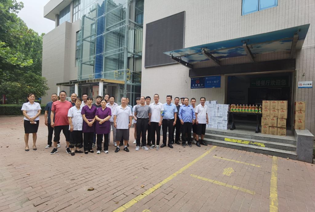 7月28日上午,党委副书记孙建立带领工会负责人一行到后勤服务集团,看望慰问在校防汛救灾工作人员,并为他们送来慰问品。