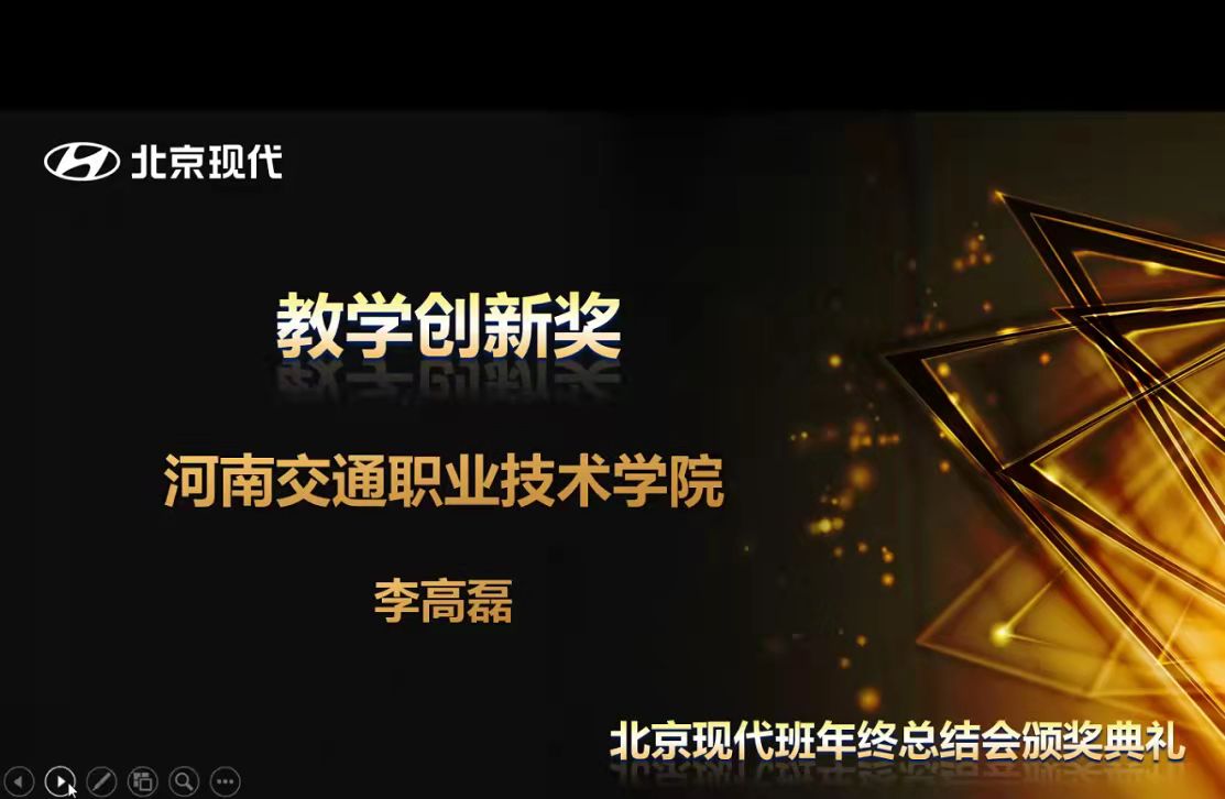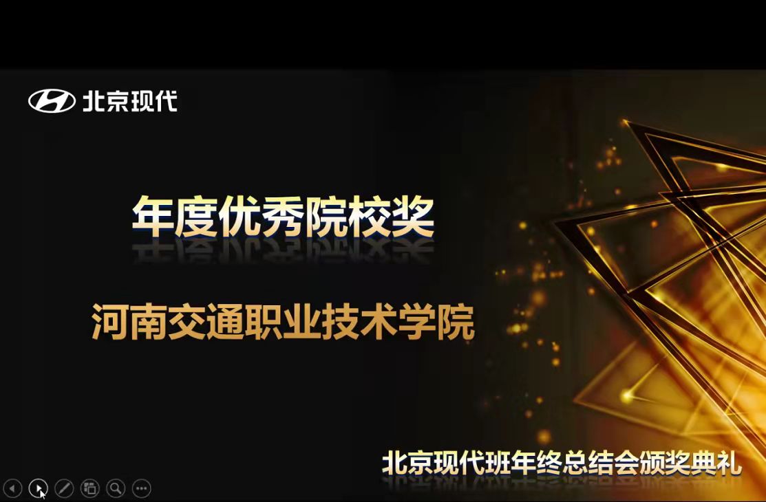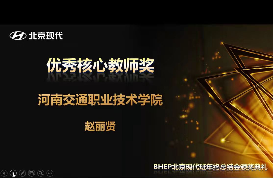 会上,北京现代汽车有限公司总结了2021年“北京现代班”的各项工作,表彰了优秀合作院校。在“北京现代班”校企合作项目年终评比中,我校教师赵丽贤荣获“优秀核心教师奖”;李高磊荣获“教学创新奖”和“合作模范奖”。同时,凭借完善的管理模式、扎实的办学作风、持续扩展的社会培训影响力、专业的教学团队和优异的考核成绩,我校荣获“北京现代班”项目“年度优秀院校奖”。