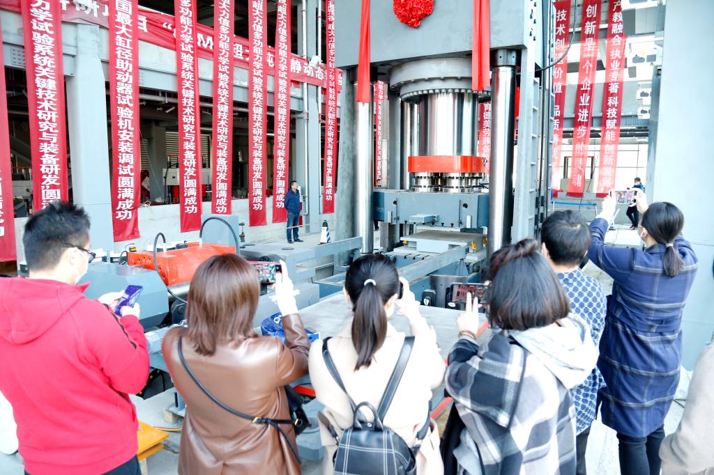 吸引媒体前来参观采访的是我校交院集团公司这项重大科研成果——超大力值多功能力学试验机。2月26日,“超大力值多功能力学试验系统关键技术研究与装备研发”科技成果评价会在我校召开,经专家评审,认定项目技术复杂、研制难度大、创新性强,整体达到国际先进水平,其中单作动器超大力值大位移精准加载控制技术达到国际领先水平。