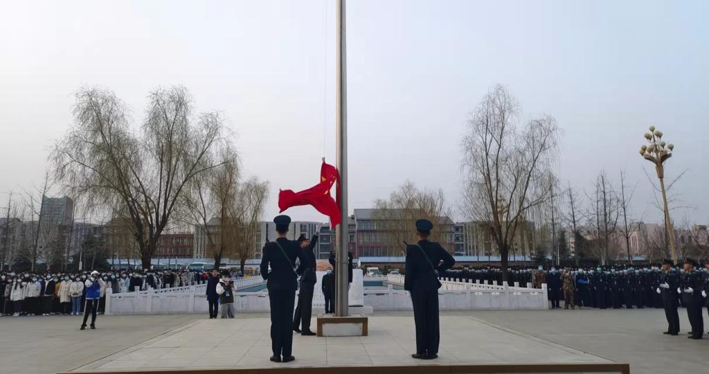 3月7日,学校在郑东校区图书馆前举行新学期全体学生升国旗仪式,学生工作部(处)相关负责人、各院(系)辅导员代表、20级、21级学生参加仪式。