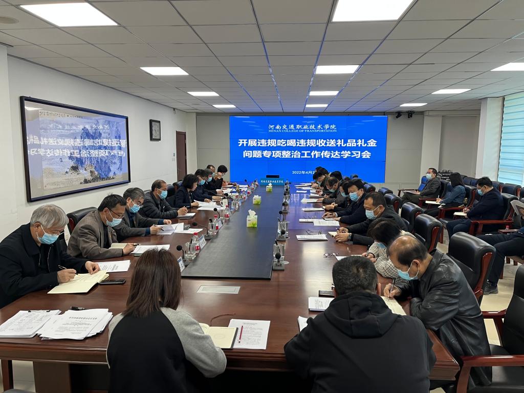 4月2日下午,学校在郑东校区行政楼第三会议室召开开展违规吃喝违规收送礼品礼金(以下简称“两违规”)问题专项整治工作传达学习会议,校领导班子全体成员、校纪委委员、各党总支书记参加会议。