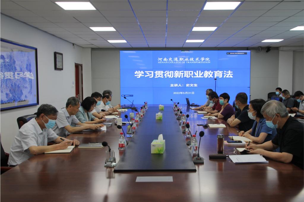 5月31日下午,学校党委理论学习中心组在行政楼四楼第三会议室召开新《职教法》专题(扩大)学习会议,党委理论学习中心组成员参加学习,党委书记曹焱主持学习。