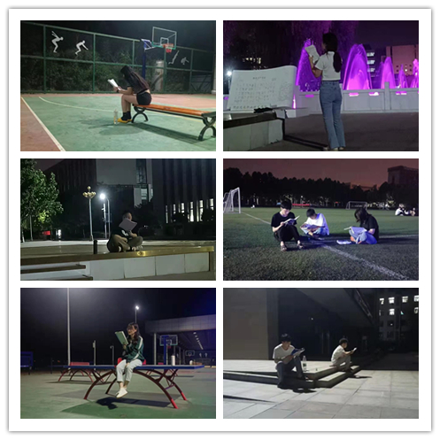 喷泉广场、廊架下、操场上、餐厅前,处处可见我校学子努力学习、勤奋备考的身影……
