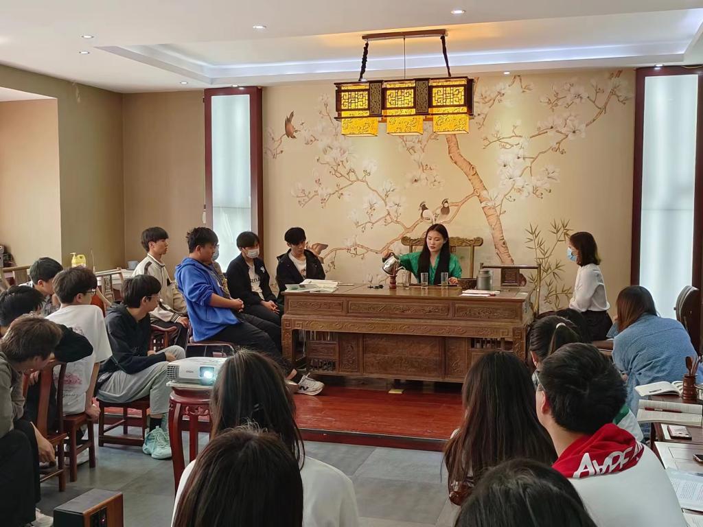 课上,张文斐通过理论与实践相结合的方式,重点讲述了“绿茶茶艺”的冲泡方法。