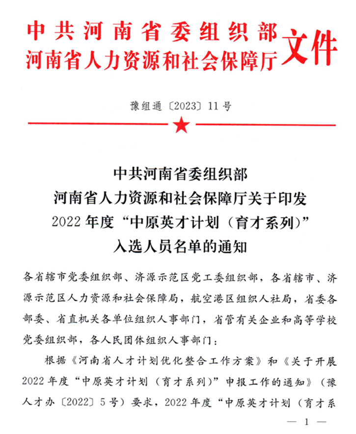 “中原英才计划”是河南省委省政府于2017年开始实施的高层次人才特殊支持计划,包括中原学者、中原领军人才、中原青年拔尖人才三个层次共10类人才。