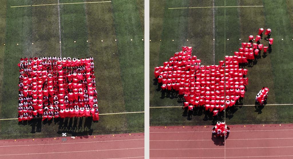 “哇……也太赞了吧!”“他们的队列好整齐啊”……伴随着观众席的阵阵欢呼和称赞,来自9个院系的艺术团体操队伍依次入场展演。现代舞、传统舞、太极拳、健美操、刺杀操……各支队伍身着各式各色服装,将传统文化与现代流行、专业特色与现场展演相融合,用舞蹈和造型尽展青春风采和拳拳心意。其中,汽车学院以翻飞的舞旗幻化出汹涌的波涛和翱翔的雄鹰;公路学院以白衣红扇拼出“中国”字样和中国地图;航运海事系先是用摆出帆船、海鸥、锚等造型,又以“I LOVE HNCT”“1953”“2023”“70”等造型花式告白学校,庆祝学校建校70周年。