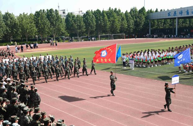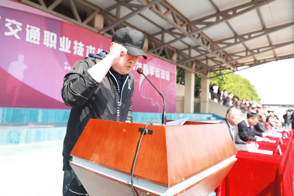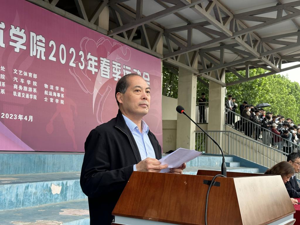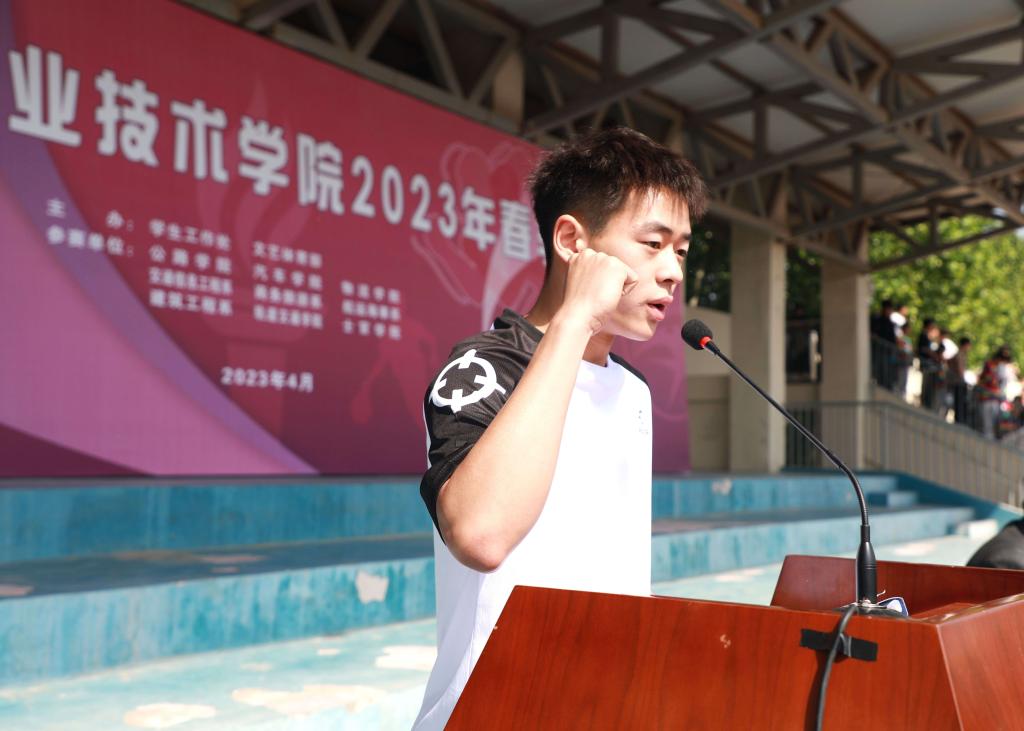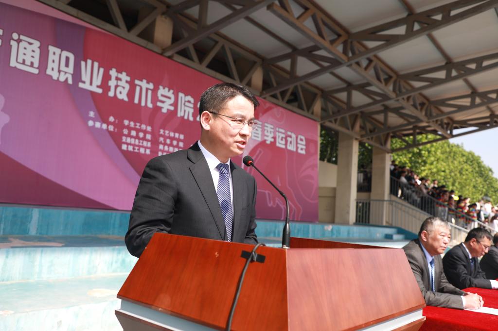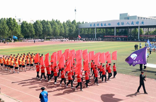 焦宏涛致开幕词,他指出,运动会,既是对学校体育工作的集中展示,也是对体育教育成果的全面检阅。希望广大同学、老师们以此为契机,领略体育魅力,享受运动快乐,凝聚奋斗精神,充分发挥敢于挑战、团结协作、绝不服输的精神风貌和昂扬斗志,用运动之拼搏,谱青春之华章。希望广大运动员在运动场上比技术、比思想、比作风、比纪律,赛出成绩、赛出风格、赛出友谊、赛出团结;希望裁判员恪守“公开、公平、公正”的竞赛准则,严格遵守运动会的各项规则和纪律,进行公正的裁决;希望全体工作人员坚守岗位,做好后勤服务保障工作;希望在场观众遵守“文明、守礼、友好”的观赛要求,尊重比赛和选手,为运动健儿们加油喝彩。