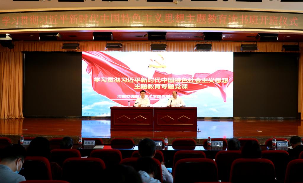 5月17日,党委书记刘志伟在郑东校区图书馆二楼报告厅为主题教育读书班学员讲授专题党课。在郑校领导和全校副处级以上党员干部、部门负责人参加读书班,现场听党课。