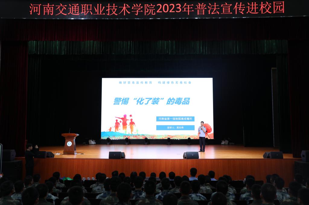 为深入学习宣传贯彻习近平法治思想以及关于禁毒戒毒工作重要指示精神,增强我校学生的法治思维和识毒防毒拒毒能力,近日,学校党政办公室和学生工作处联合举办“护航开学季禁毒宣讲进校园”法制教育报告会,特邀河南省第一强制隔离戒毒所教育科负责人到校作专题报告。党政办公室负责人主持报告会,戒毒所警官、各院(系)学生代表近800人参加报告会。