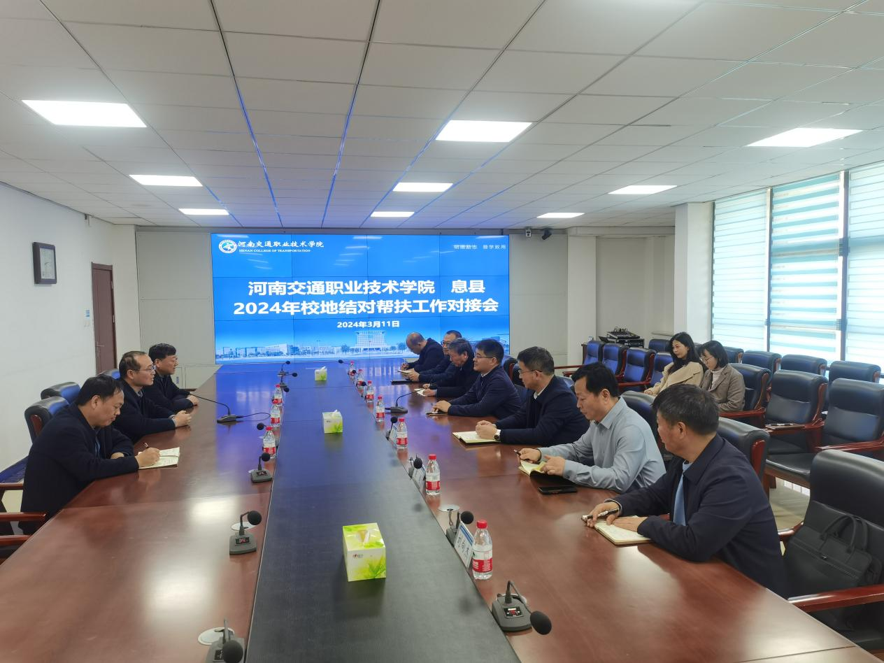 3月11日,息县县委常委、宣传部部长贡少辉带领息县交通运输局负责同志来校对接2024年校地结对帮扶工作。学校党委书记刘志伟、校长焦宏涛、副校长李松涛出席会议,党政办公室、党委组织部、校地结对帮扶工作队负责人参加座谈交流。