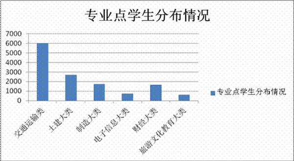 学院全日制学历在校生总数13861人,其中交通运输类专业在校生6010人,土建大类专业在校生2716人,制造大类专业在校生1730人,电子信息大类专业在校生754人,财经大类专业在校生1669人,旅游文化教育大类专业在校生615人。