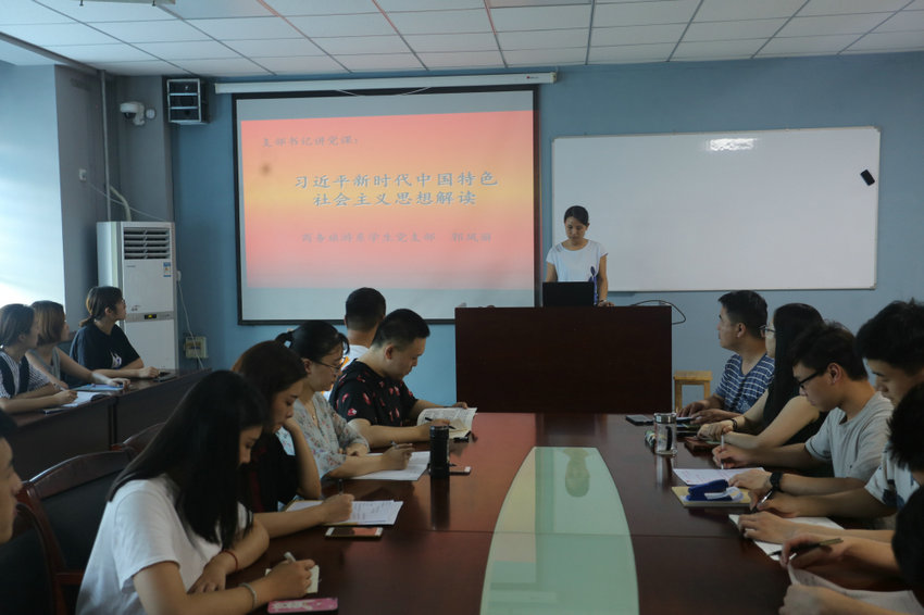 7月3日下午,商务旅游系学生党支部在新校区开展“不忘初心、牢记使命,共建美好校园”的支部书记讲党课活动,学生党支部全体师生党员、预备党员、入党积极分子参加。本次活动由党支部书记郭凤丽主持。 本次活动分为两个部分。首先,由郭凤丽为大家讲党课,题目是“习近平新时代中国特色社会主义思想解读”。随后,大家围绕所讲内容进行小组交流讨论。 会上,郭凤丽通过详实的案例,向大家解读了习近平新时代中国特色社会主义思想名称的表述,详细解读了四个自信和五位一体,尤其是讲到五位一体中的生态文明建设,结合身边的案例,使我们深切感受到如此定位的准确性和必要性,理解了青山绿水也是金山银山的论断,也对习近平新时代中国特色社会主义思想有了深刻的认识和理解。 本次党课将新思想中的新观点、新理论、新论断形象化、具体化,理论联系实际,让大家耳目一新,深受鼓舞,更加坚定理念信念,大家表示要团结在以习近平同志为核心的党中央周围,用自己的实际行动践行初心,共建美好校园。