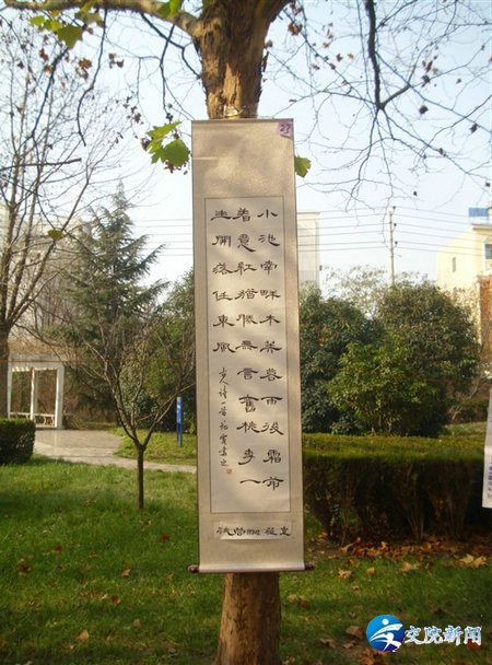 12月8日,汽车工程系2011级新生书法绘画展在我院艺术中心门前林荫道举行。本次书法和绘画展经系级初赛筛选后45名优秀选手进入下一轮比赛,最终将评出一、二、三等奖。