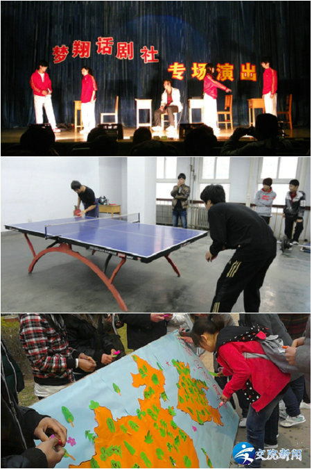 其中包括艺拓美术空间“书画缤纷,青春飞扬”书画作品展、“我为祖国添绿色”板报设计展,计算机爱好者协会的计算机图标设计比赛,汽车爱好者协会的汽车标志设计大赛,梦翔话剧社专场演出《李雷与韩梅梅》,思华文学社的庆祝“建团90周年”征文大赛,乒乓球协会“群星杯”冠军争霸赛等等,这些活动的开展为参加艺术节选拔出了一批富含青春朝气、积极向上的优秀节目,同时使我院学生的整体素质得到了提升。