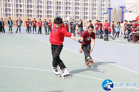 3月27日下午,我院轮滑协会组织50余名轮滑爱好者在新校区篮球场进行了第一次表演,活动同时邀请到河南理工万方科技学院和郑州铁路职业技术学院的轮滑协会共同表演。
