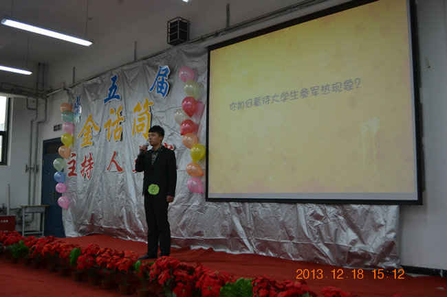 12月18日,由院团委主办的第五届金话筒主持人大赛决赛在4A111教室举行。院团委老师、学生干部及近300名同学共同观看了此次比赛。