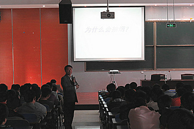 本次讲座中,余博士以“为了我们的肺,请远离烟草!”为主题,引用大量图片、实例,生动形象、深入浅出的讲解了吸烟的危害、戒烟的理由、戒烟的好处、戒烟的方法等。让在座的同学们形成共识,吸烟是人类健康的大敌,尤其对正在生长发育的青年人危害更大,为了自身和他人健康,戒烟控烟势在必行。