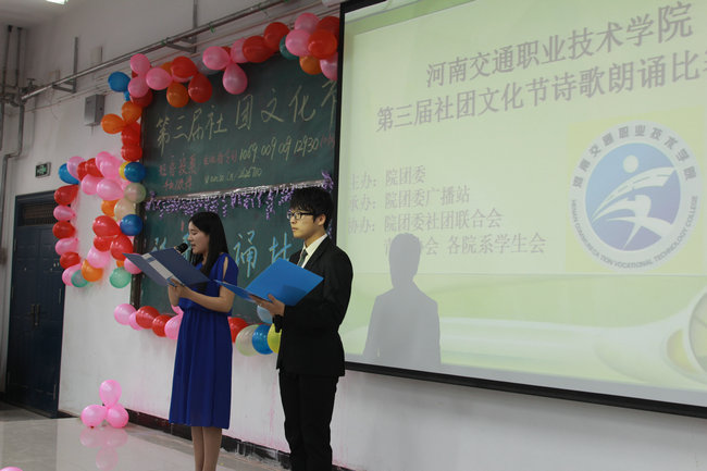 5月14日下午,由院团委主办的的第三届社团文化节之“飞扬青春”诗歌朗诵比赛在公共教学楼4A111成功落下帷幕。最终,商务旅游系选手程文豪朗诵的作品《我在这里等你》以独特的创意、优美的文笔和精彩的演绎赢得了评委和观众的青睐,一举夺魁。