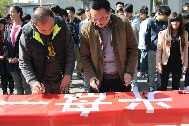 启动仪式上,学生干部们深入到食堂,向广大同学发出了《光盘行动,从我做起——致广大同学的倡议书》,号召他们加入“光盘行动”,争做勤俭节约的继承者、实践者和示范者。食堂门口,学生们利用手机扫取宣传海报上的二维码,并在餐厅门口签横幅表决心,切实把自己融入到整个活动中。