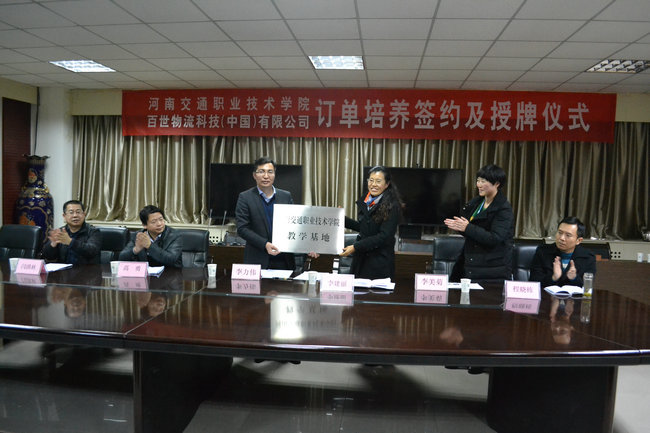 12月24日,百世物流科技(中国)有限公司与物流学院订单培养签约及授牌仪式在学院航海路校区顺利举行,百世物流科技(中国)有限公司河南分公司李力伟总经理、物流学院李建丽院长、高勇书记等全体班子成员出席了签约及授牌仪式。