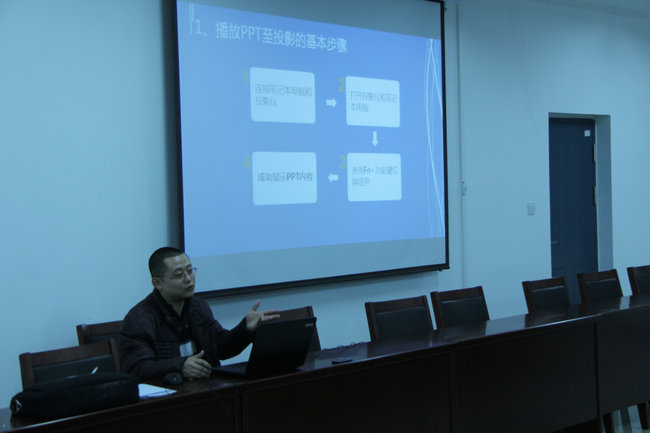 3月26日下午,根据学院2014~2015学年第二学期教学工作会议精神要求,现代教育技术中心负责多媒体技术的何凯老师在交通信息工程系会议室为各院(系部)多媒体设备管理员举办了《PPT投影播放技术》讲座。
