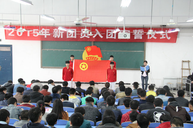 为壮大我院共青团组织的力量,激励学生奋发向上的热情,4月8日中午,我院隆重举行2015年新团员入团宣誓大会,团委全体工作人员、各系院团总支书记与我院150名新团员一起参加了仪式。