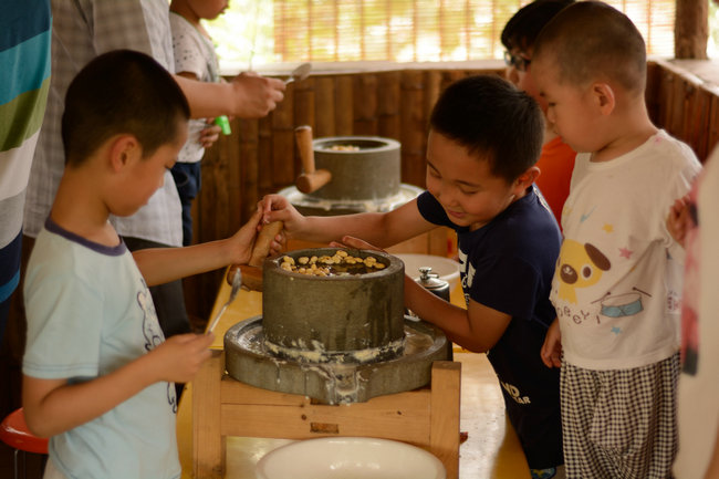 在农场教育基地,老师们将各个项目用游戏串接起来,现场气氛积极活跃。“田园采摘”、“麦场收割”和“自制午餐”让参与活动的孩子们真实的感受了从田园到餐桌的过程;“五谷贴画”锻炼了孩子的动手能力,展现了孩子们的创意;“餐前感恩”让家长和孩子都深刻领悟感恩、分享和尊重的内涵。