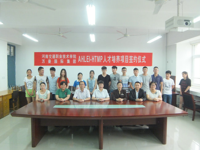 7月6日14:30,商务旅游系与万豪国际集团在4A310教室举办AHLEI-HTMP人才培养项目的签字仪式。出席此次签字仪式的领导有:商务旅游系主任陈振锋、酒店教研室主任徐硕、系学管王亚琼、团总支负责人杨梦璐、万豪国际集团中国区校企总监陈雪芬、JW万豪酒店人力资源总监邵峰、郑州汇艺万怡酒店人力资源部经理戴明生、美国饭店协会教育学院河南代表处负责人王阳,2013级学生代表15人等。