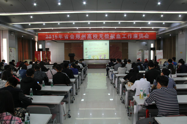 10月17日上午,河南省红十字会血液中心隆重举办2015省会郑州高校师生无偿献血工作座谈会,来自郑州市62所高校的150余名师生参加,学院团委和学生会主要负责人参加了本次会议。