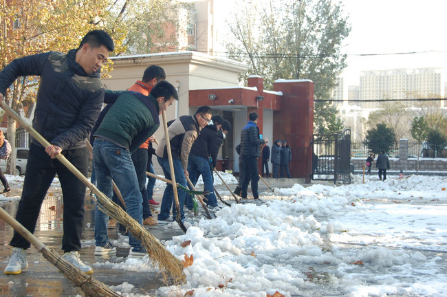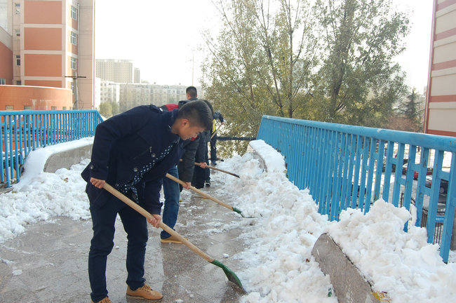 11月24日,郑州迎来了入冬以来的第一场大雪,伴随着凛冽的寒风,厚厚的白雪覆盖了整个校园。校园内道路和天桥积雪结冰,给师生出行带来诸多不便。25日下午,汽车学院组织学生党员对航海校区进行扫雪铲冰。