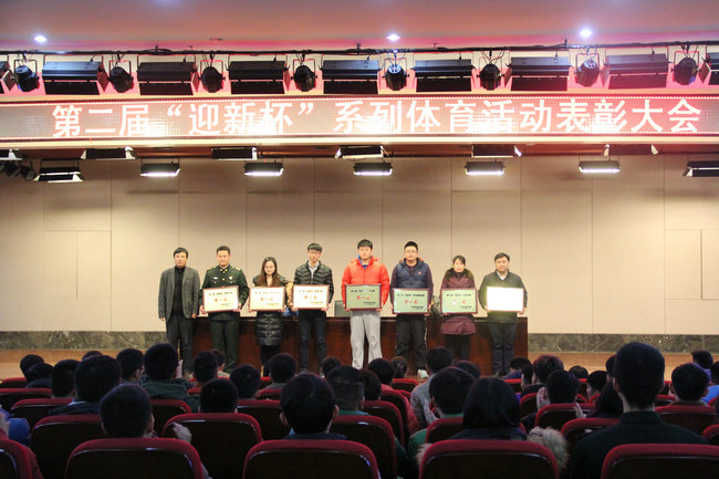 由团委、文艺体育部主办的第二届“迎新杯”系列体育活动表彰大会于1月5日在图书馆报告厅举行。工会主席张瑞春出席大会,大会由文艺体育部副部长许局主持。