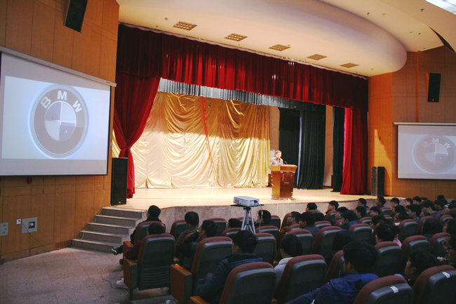 宣讲会上座无虚席,汽车学院副院长袁荷伟做了开场报告,讲解了汽车学院校企合作订单班发展历程,宣布了订单班报名方法和要求。丰田T-TEP班、利星奔驰班、北京现代班、一汽大众“TQP伙伴计划”教学班和宝马BEST订单班等5位订单班负责人分别做了详尽的报告,向大家介绍了订单班的培养模式、组班计划、教学场地和就业形势等,让学生对每个订单班都有比较全面的了解,方便学生选择。