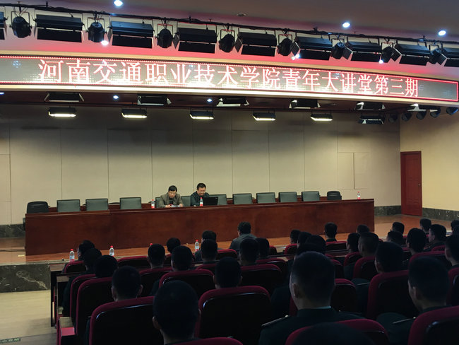 为启迪青年思想,促进学院校园文化建设。3月24日晚,学院400余名师生齐聚图书馆二楼报告厅,参加了由团委主办的第三期“青年大讲堂”活动。本期活动的主题是《新常态下人生与职业规划》,由郑州交通建设投资有限公司徐珂总经理主讲,工会张瑞春主席主持。