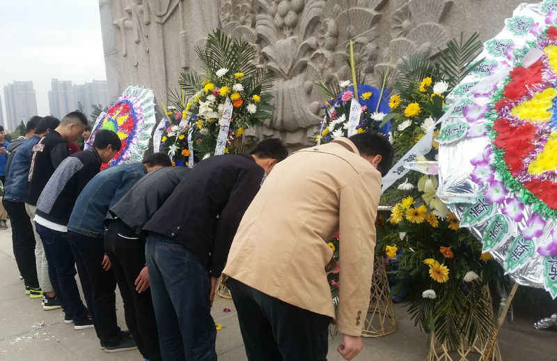 上午10点,学生志愿者们到达郑州市烈士陵园,大家整齐站立,庄严肃穆。志愿者们先在革命英雄纪念碑前默哀三分钟;接着志愿者代表向无数革命先烈敬献花圈,全体志愿者依次向革命先烈献花并在革命烈士纪念碑前念誓词,为烈士墓清除杂草。