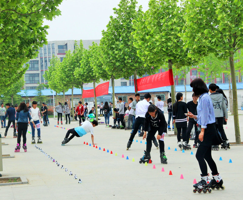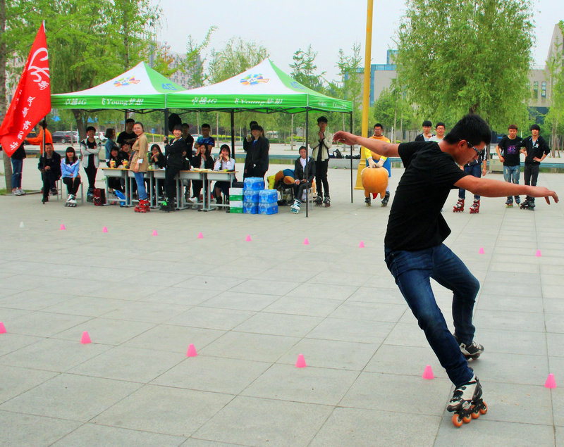 4月17日,来自郑州各高校的近200名轮滑爱好者齐聚我院新校区,在图书馆南广场上演了一场精彩绝伦的轮滑竞技。此次比赛由河南金途集团赞助,团委主办,是近几年来在我院举办的规模最庞大、参与度最高的轮滑活动,共邀请了来自华北水利水电大学、郑州电力高等专科学校等17所高校的20余支代表队参赛。