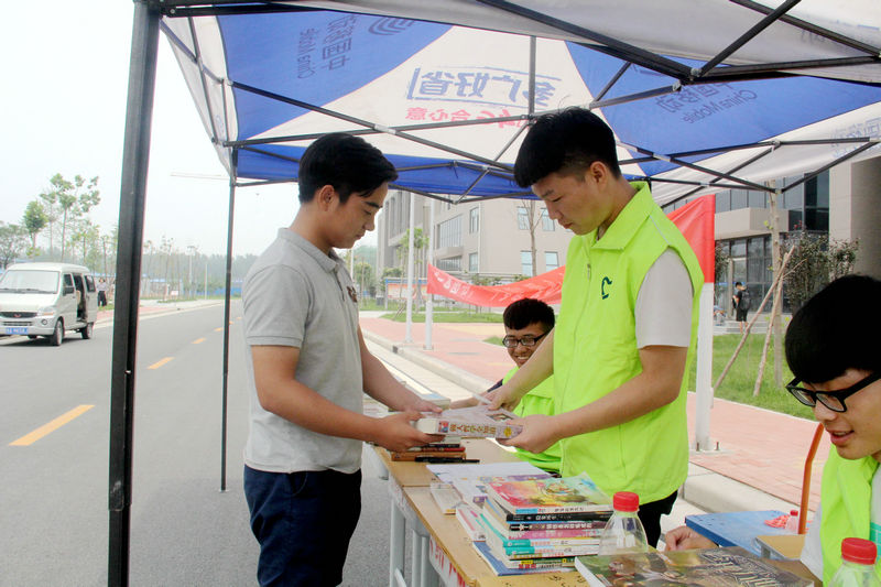 本次捐书活动的主题是:“一本图书,一个梦想;爱心图书角,让孩子们的梦想飞翔!”。团委提前通过海报、广播及时宣传,捐赠活动的两天中,在一期和二期餐厅门前的捐书点挤满了前来献爱心的老师和学生,为了支持本次活动,金途集团捐赠了价值2000元的新书。截至6月15日,本次活动共有近200名师生参与,共收集了包括科普类、文学类、期刊在内的500余册图书,团委将会将全部图书进行打包,送往兰考县和上蔡县的学院对口帮扶点。